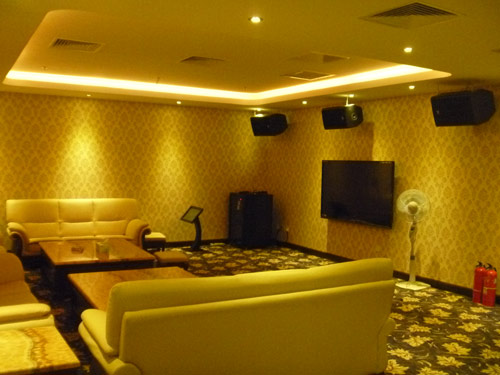 在本次企業文化項目中,電力公司為員工配備一整套的KTV娛樂包房設施,包括JBL音箱系統、夏普70寸液晶電視、頂級觸控屏點唱機及國際高端音頻處理設備(調音臺、功放、揚聲器)等。同時根據朗悅科技工作人員還根據現場建聲的特性,依據準確的數據制定音響的懸掛方式和音響品類的選擇。