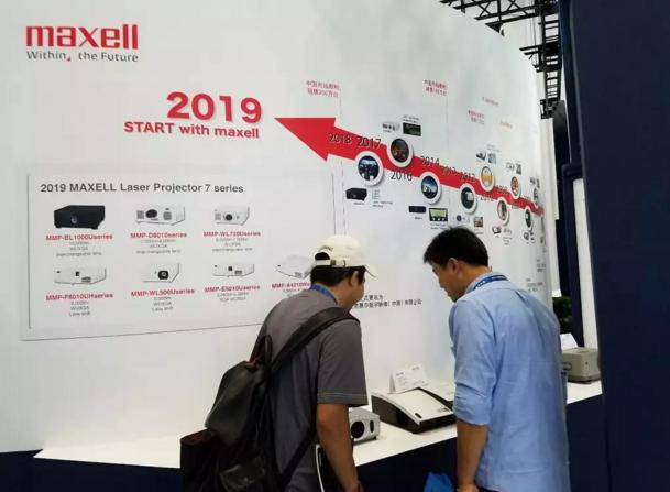 展會現場,還以機身異形投影的方式展示了麥克賽爾主打產品,并展示了麥克賽爾投影機悠久的歷史,讓觀眾全方位了解麥克賽爾。