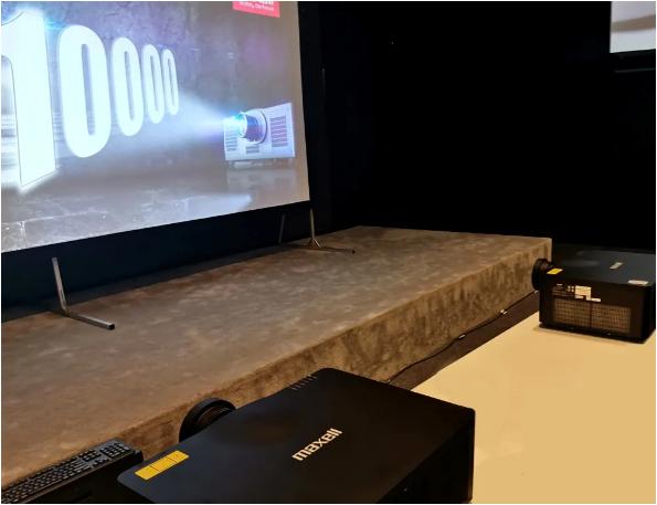 作為本次巡展的重磅產品MMP-D1000UB投影機,巡展現場通過兩臺融合拼接,加上投影機本身的高分辨率,使圖像更清晰,投影融合系統中將兩臺或多臺投影機投射出的光線和畫面進行邊緣重疊,通過軟硬件的結合處理,消除光線重合部分的多余亮度,調整不同投影機之間的顏色差異,它比普通的標準投影機顯示尺寸更大、視野更寬、分辨率更高、融合后的畫面效果可以給人們帶來更強的視覺沖擊和沉浸式體驗。