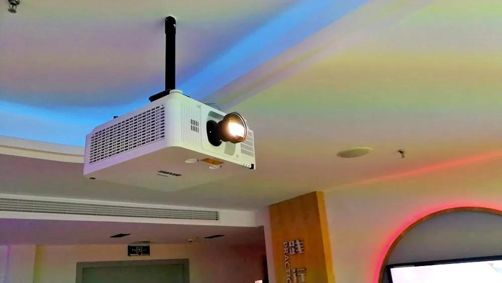 作為此次項目的“核心”,麥克賽爾DLP激光工程投影機MMP-WL620U,采用藍色激光二極管和熒光輪的結合實現了高亮度。投影畫面不但明亮、清晰且色彩亮麗、生動。相較于傳統的燈泡光源投影機,不存在更換燈泡光源的問題,有效地降低了維護成本。MMP-WL620U投影機還能實現360°全方位投影,任意角度靈活性安裝,如果片源是豎直形的片源,可以直接將該投影機垂直放置即可實現投影(縱向投影)。