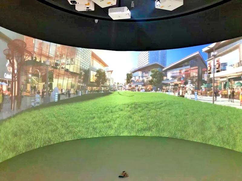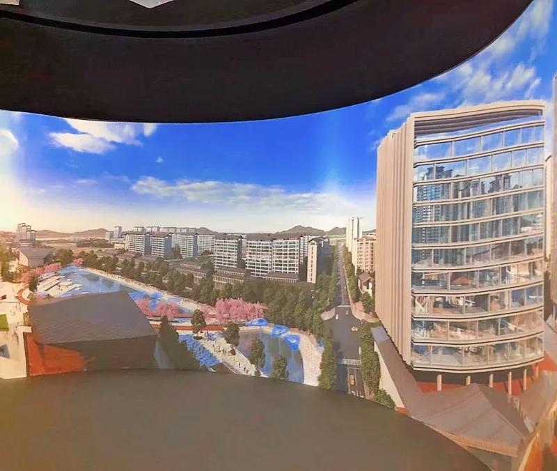 房地產(chǎn)展廳作為以宣傳推廣為主要功能的展示平臺,通過不同的展示方式,能夠激發(fā)人們對于樓盤的興趣,隨著數(shù)字多媒體技術(shù)的發(fā)展,其中弧幕投影、環(huán)幕投影、天幕投影是在展廳中最常用的展示形式。同樣在規(guī)劃館、博物館、天文館等展館同樣適用,相信未來將出現(xiàn)在更多的領(lǐng)域中。弧幕投影是將超大的投影畫面通過投影融合技術(shù)呈現(xiàn)出無縫拼接的效果,通過圖像邊緣融合,將若干個(gè)畫面融合為一個(gè)超大尺寸的畫面,使高清視頻流暢輸出,創(chuàng)造出沉浸的弧幕顯示震撼效果,給看參觀者帶來強(qiáng)烈的視覺沖擊感,進(jìn)而大大提高品牌影響力和展現(xiàn)的實(shí)際效果。